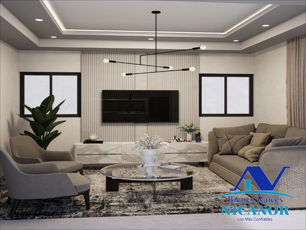 *Sala en el primer nivel, el segundo nivel y Marquesina Para Dos Vehículos