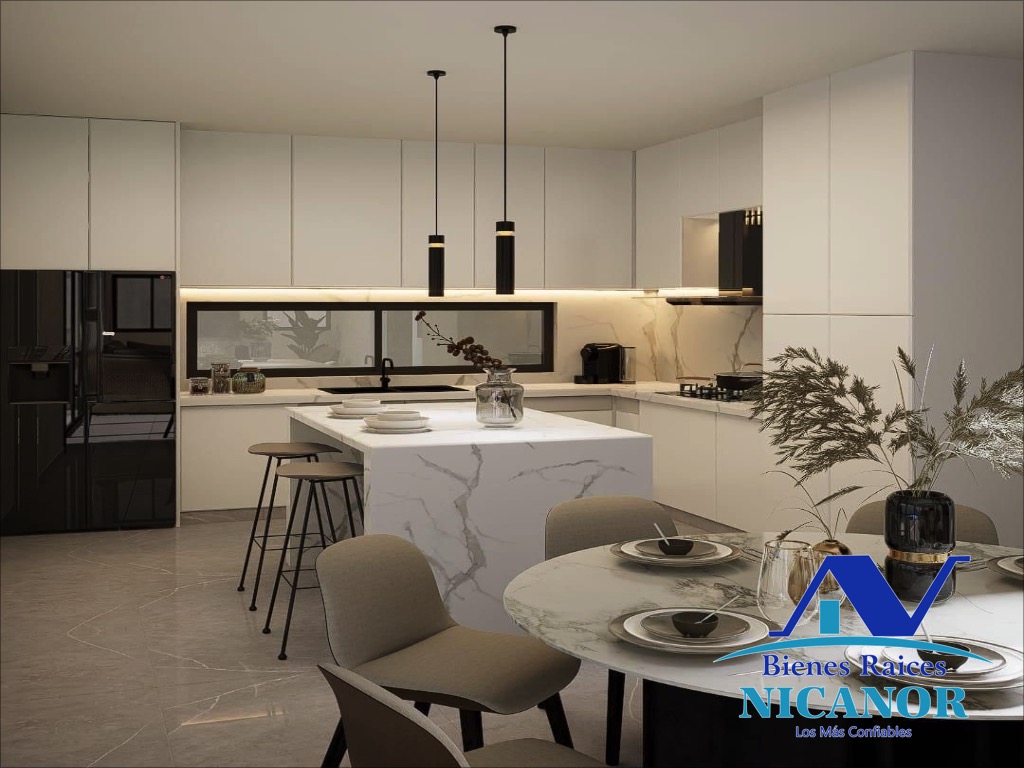 *Tres habitaciones y tres baños, comedor y Cocina equipada con Estufa empotrada, Horno, Microonda, extractor